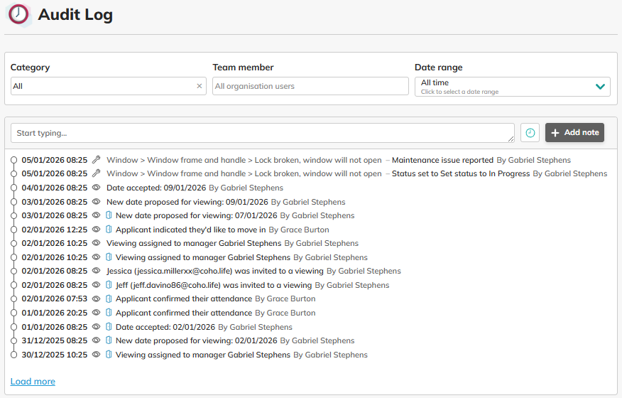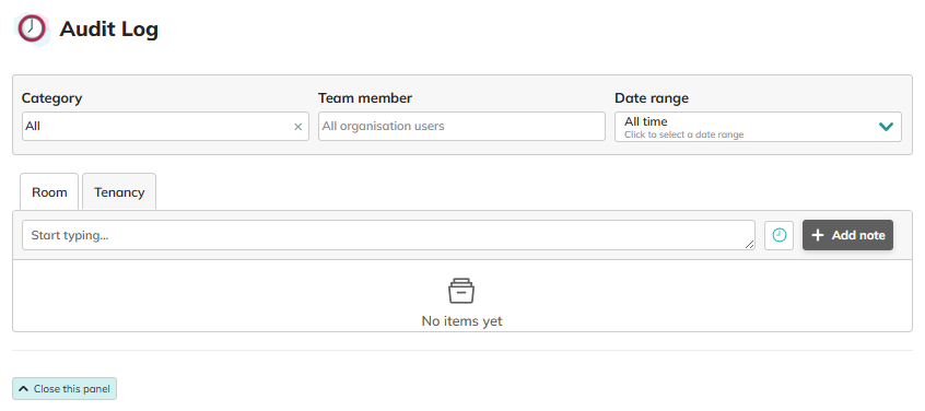 Audit Logs in COHO help you track what’s been happening in your organisation, the property or a room/tenancy.