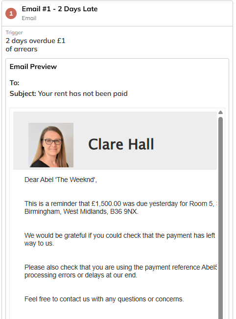 Here you can define a credit control process when rent becomes overdue. Templates can be set up as per your processes. COHO provides an example policy and templates for you, which can be used as is to help you get started, or edited as the basis for your own policies.