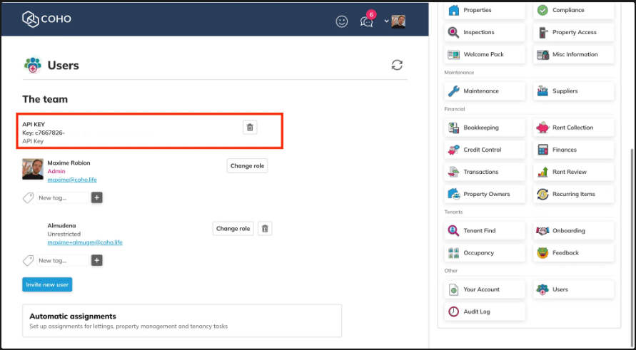 The two methods require some authentication from your end before being able to use one or the other services. You will need an “API key”. To get this API key, go to the Users panel (https://coho.life/app/manage#organisation-users) and click on “Invite new user”