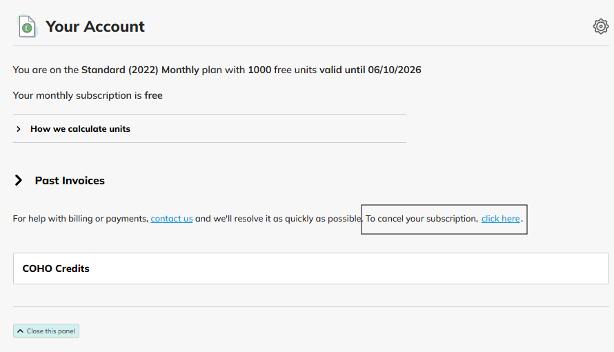 Before we talk about cancelling your account on COHO, we'd like to understand why. If support or training is required, we have many resources available to you which includes the following: