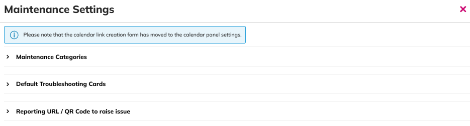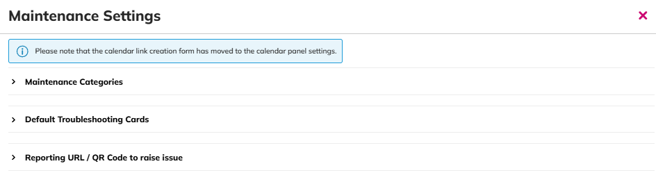 It is important to understand the differences between the Maintenance settings cog options as they differ from the main organisation page Maintenance panel to property level Maintenance panels.