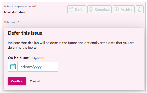 Once the issue is reported, you can click ‘Defer’ to move the issue to the Deferred section of the workflow.