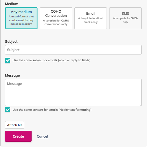 Any Medium: Here you will get all the options of how the message will be sent as a COHO messenger message and email.
