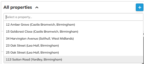 Clicking the down arrow next to 'All properties' allows you to select a property from a drop down menu: