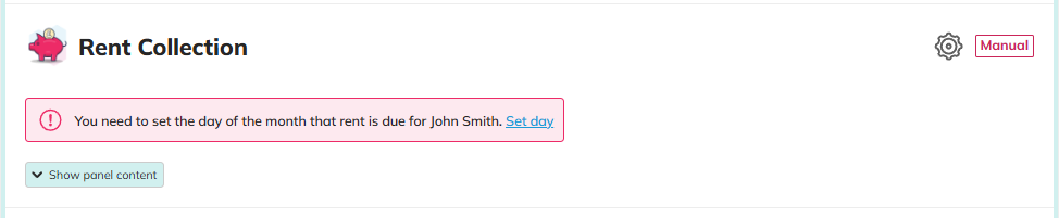 Manual rent reconciling can be completed on any Rent Collection panel. The organisation page Rent Collection panel will display all properties and all tenants.