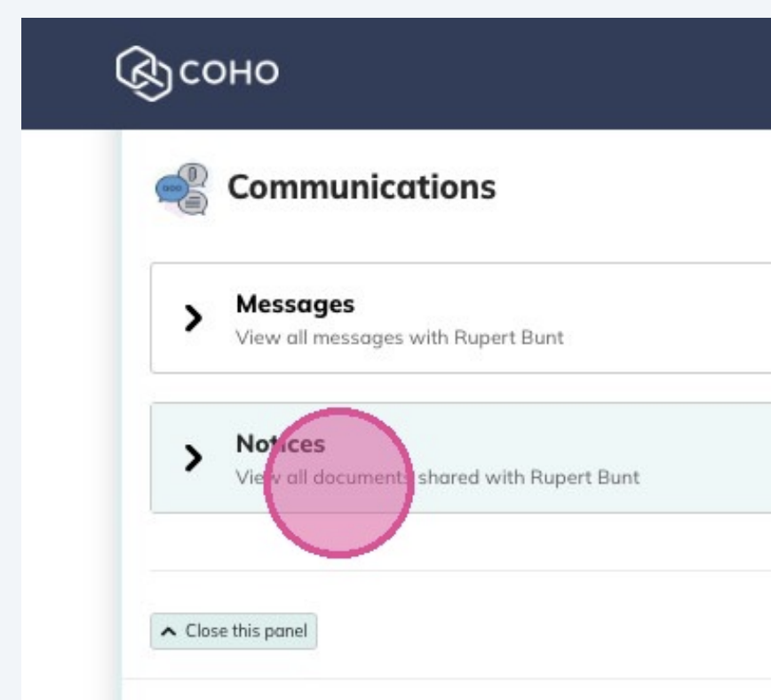 Once the document has been sent, within the "Notices" panel you will be able to see the following: