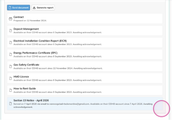 your tenants through the Coho platform. We have already seen people issuing Section 13 Notices, Renters Rights Act Prescribed Information Sheets and Credit Control letters via this panel.